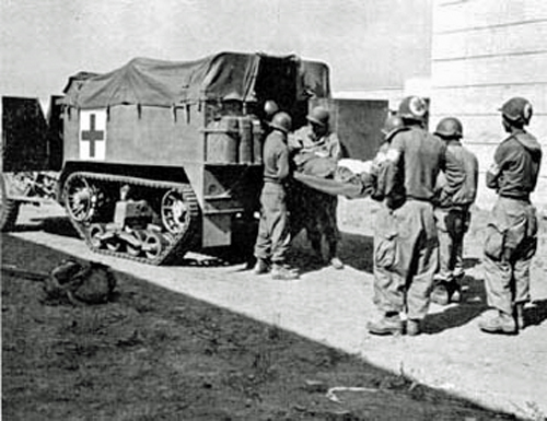 Foto eines M3 Ambulanz Halftrack Fahrzeugs, der zum Transport von Verletzten vorgesehen war.