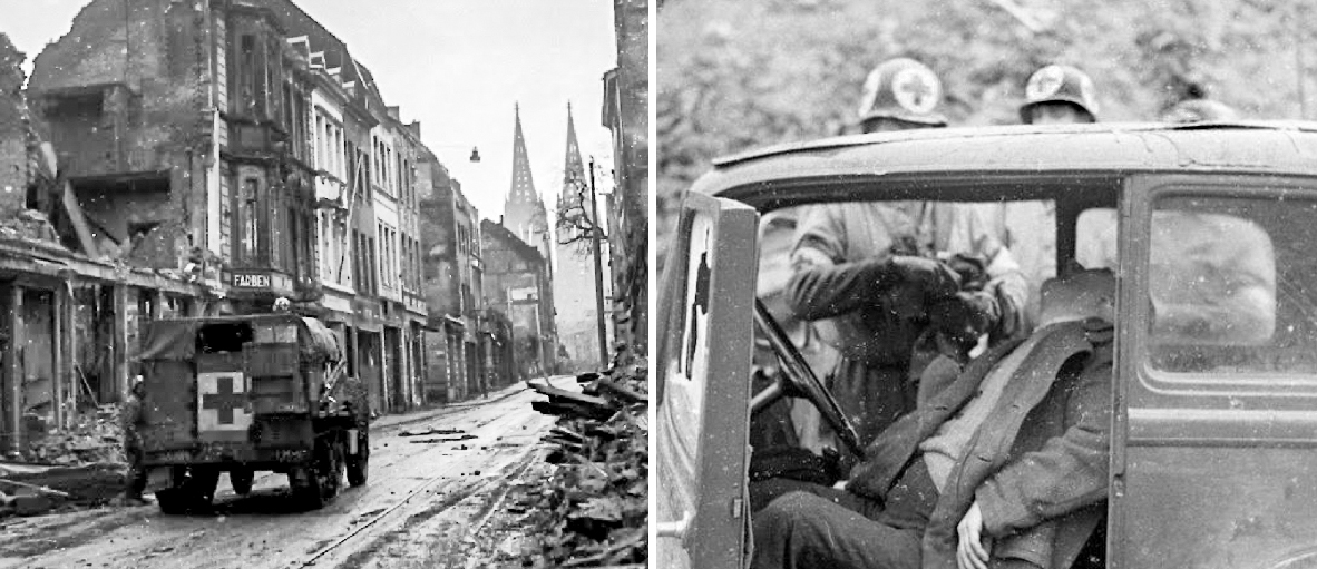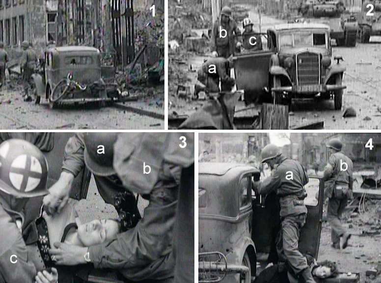 Die Fotos von John Florea, die ja etwas später gemacht worden sind, als die kämpfenden Einheiten schon weiter Richtung Dom gezogen sind, zeigen, daß dort im Bereich dann weitere Sanitäter unterwegs gewesen sind und sich sogar am Auto von Esser befunden haben.