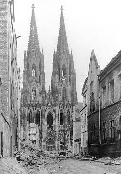 In der Bilddatenbank von LIFE gibt es ein weiteres Bild aus diesen Tagen, diesmal des Fotografen Keystone aus der Straße Burgmauer, offensichtlich auch hier kein Problem, den Dom ganz auf das Bild zu bekommen. Die Entfernung des Fotografen Keystone vom Dom entspricht in etwa derjenigen von Fred Ramage bei seinem berühmten Foto.