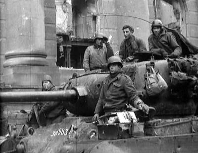 An dieser Stelle befand sich früher das zerstörte Gebäude, vor dem auch die Aufnahmen der triumphierenden Pershing Besatzung gemacht worden sind